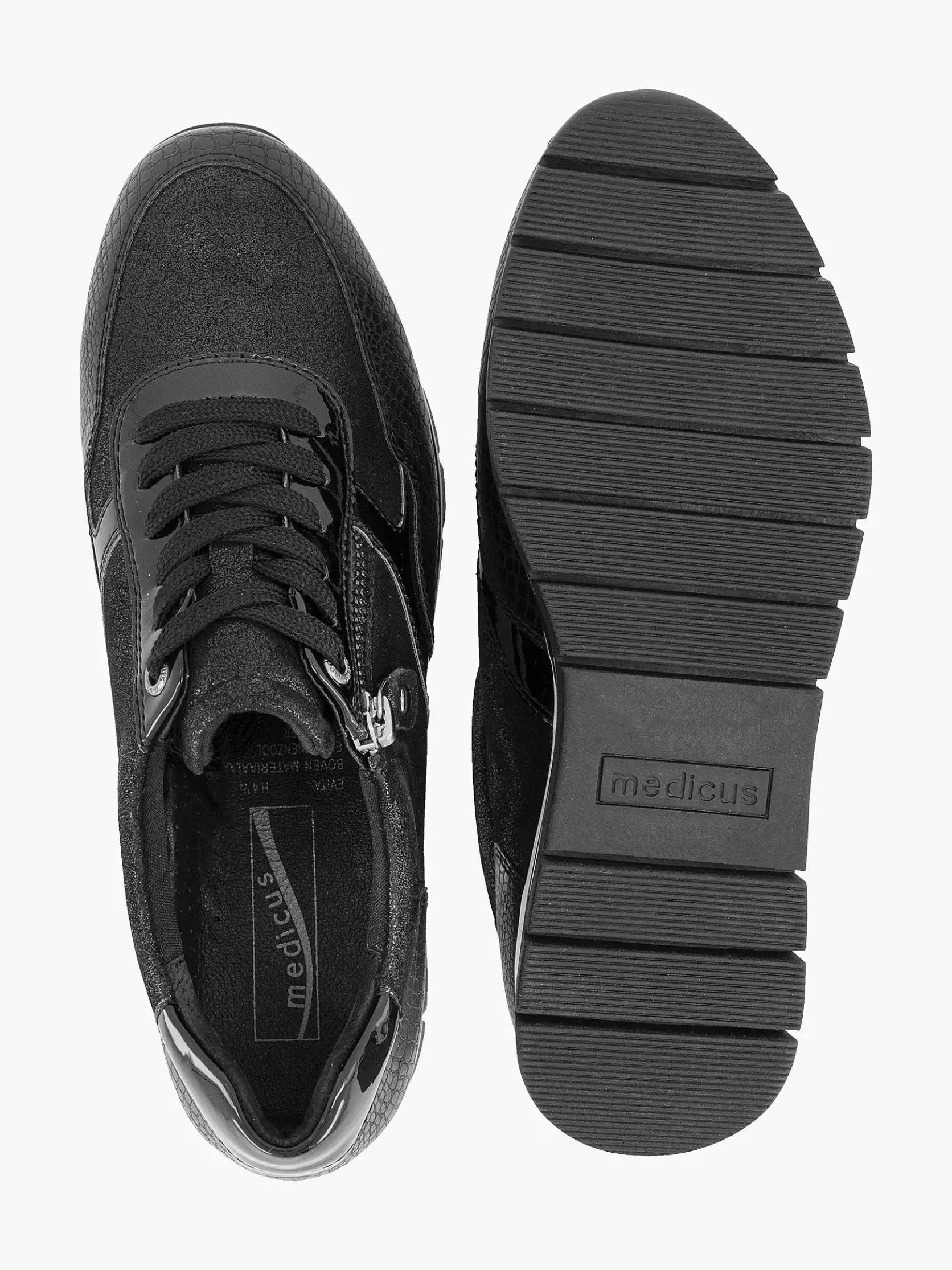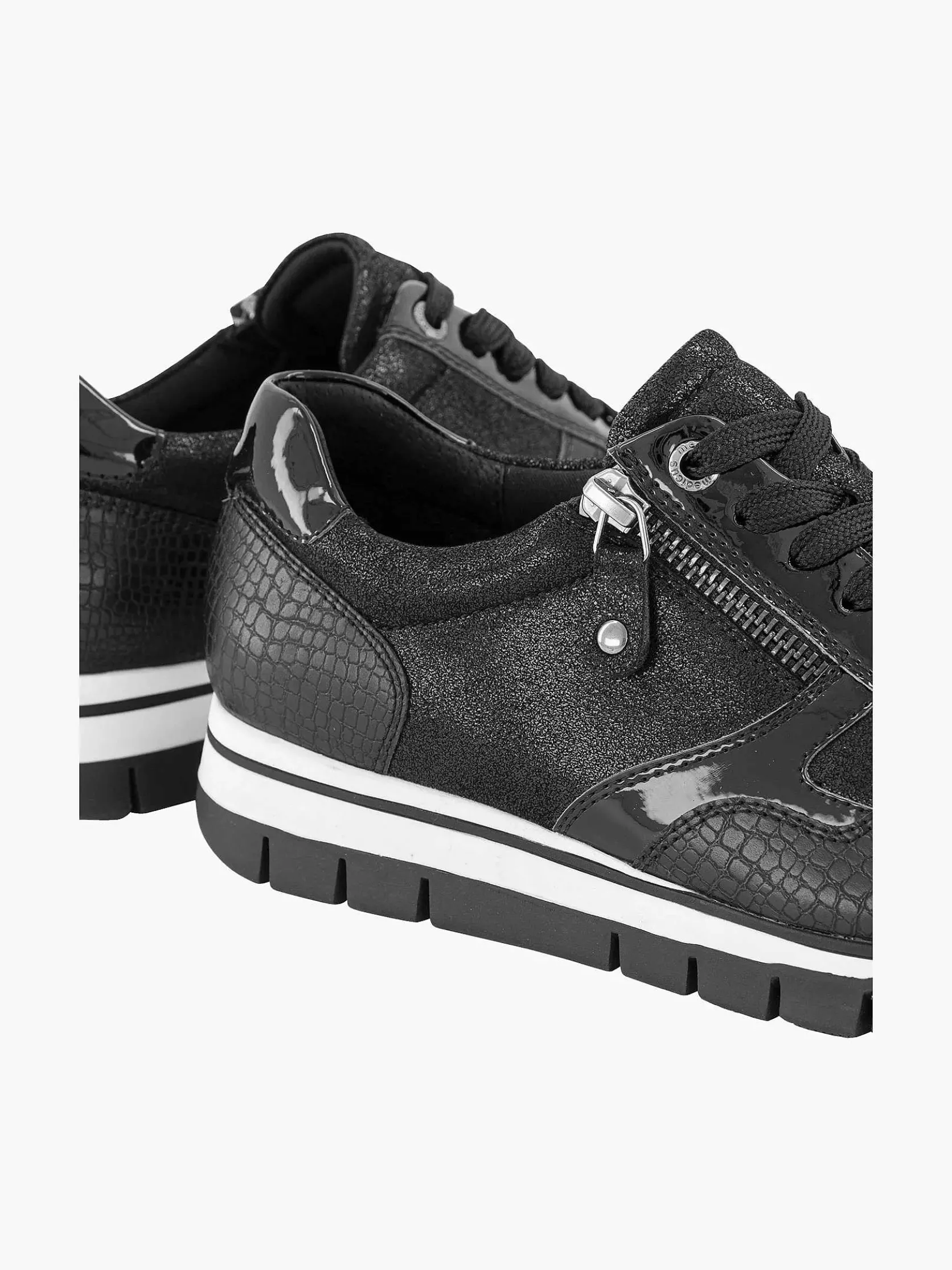Zwarte Leren Comfort Sneaker Croco